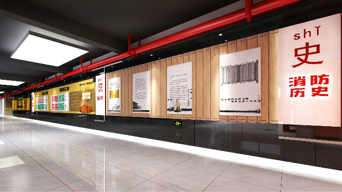 设计元素:全馆全面体现了消防主题。在图文背景、装饰图样以及互动界面上,都以消防元素如火焰、灭火器、消防栓等形状进行布景设计,无论从环境外观到展示内容,都能够从外而内地呈现消防主题展馆的形象,为参观者留下深刻的主题印象。