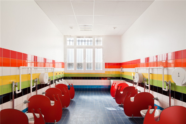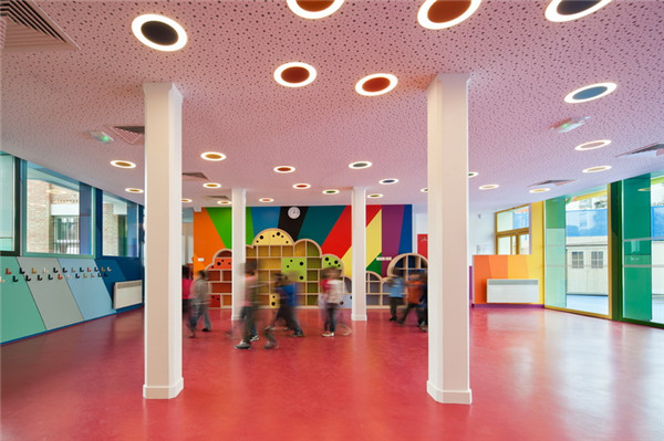 环境对于的学习来说十分重要,对小朋友来说尤其是。在法国巴黎,由Palatre & Leclére 创造了一间充满色彩缤纷的幼儿园:ecole maternelle pajol。这间幼儿园除了有用色大胆的空间外,细心的设计师还为孩童们打造各种形状和形式的家具和墙壁,运用各种纹理的瓷砖、玻璃、橡胶和材质,不仅丰富了空间的视觉,更为孩童打造了很棒的「触摸」学习环境。这栋建筑物最特别的是,40年代的巴黎老建筑改造而成的,保留原来的结构,在空间上赋予更多的新的意义给未来的明日新星。