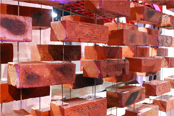 孔子雕像背后的中华文脉墙上的红砖刻有孔子的名言警句、图腾图标,与孔子雕像相辅相成,一同体现孔子克己复礼、教育兴国的理念。