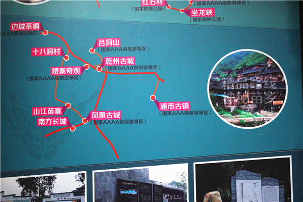 旅游景区展示区以景区标识牌的形式主要展示了全域旅游和精品路线两大部分的内容,标识牌共四部分。