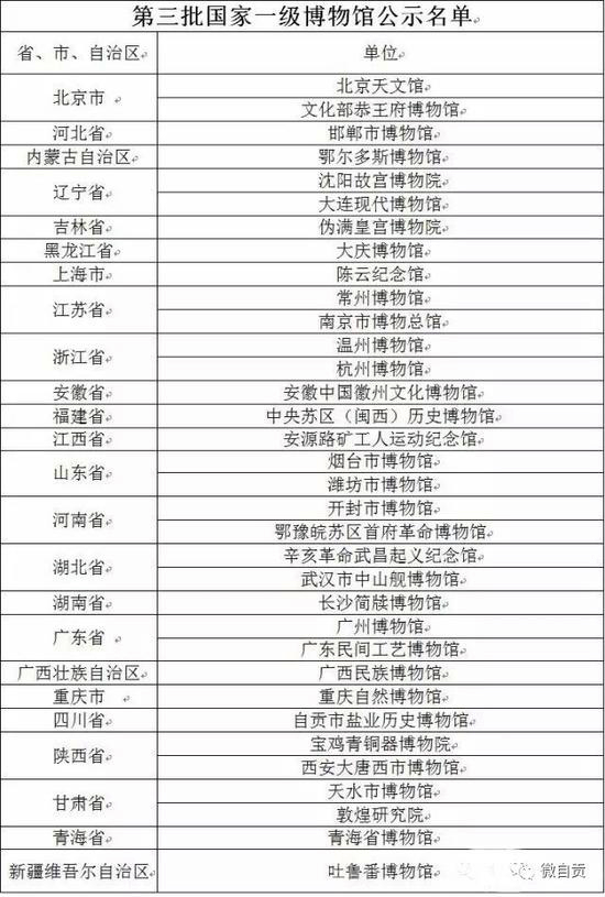 据悉,根据国家文物局《关于公布施行等文件的决定》(文物博发【2016】15号),中国博物馆协会于2016年10月至12月组织实施了第三批国家一级博物馆定级评估评审和复核工作。经相关申报博物馆自评、各省(自治区、直辖市)博物馆评估委员会(博物馆协会、文物局)初审推荐后,全国博物馆定级评估评审委员会于2016年11月27日至29日在京召开会议,集中评估打分。随后全国博物馆定级评估评审委员会又派出专家组对部分申报博物馆进行了实地复核。
