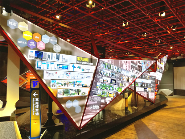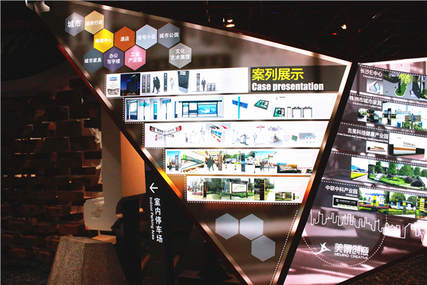 城市综合体以三角拼接的结构,胶片底片的形式呈现了商业地产和城市家具的经典案例,在商业房产、工业园、企业、医院等领域,在城市公共设施、信息服务设施、景观雕塑等方面展示了美景十几年来最精彩的案例。
