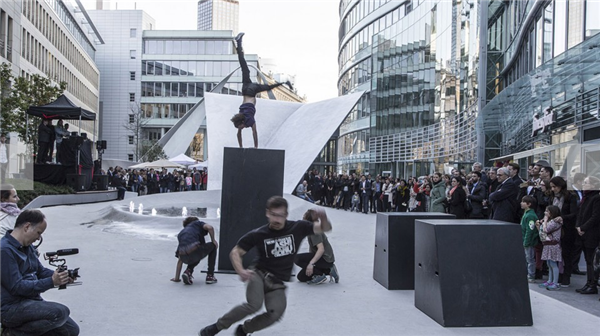 这个项目意在提升位于美茵河畔法兰克福老歌剧院附近的“浪潮”办公综合体的室外景观。施耐德+舒马赫事务所对这一新设计的初始灵感来源于这处综合体的名称“浪潮”,这个称呼与办公建筑曲线的外立面形成了共鸣。施耐德+舒马赫事务决定将这一概念继续发展并探索它的深度:设计一段在空间中流动的三维曲线,吸引注意力的同时唤起好奇心。“当我们看到一件可以供我们投射自身想象力、经历与记忆于其上的设计,它便会唤起共鸣与情感来激发我们的兴趣。” 施耐德+舒马赫建筑设计事务所创始人米歇尔.舒马赫教授如此解释道。