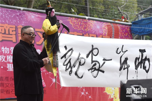 1月7日,演员在开幕式现场表演木偶戏《梁祝》。