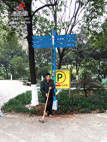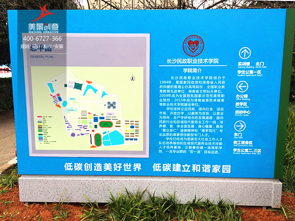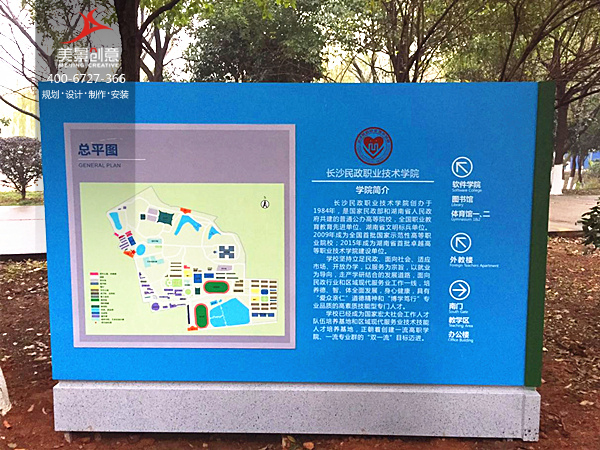美景创意采用传统标识标牌制作方式,用蓝色作为主色调,亚克力为主材料,造型简约风格明显,突出了标识牌的功能性。