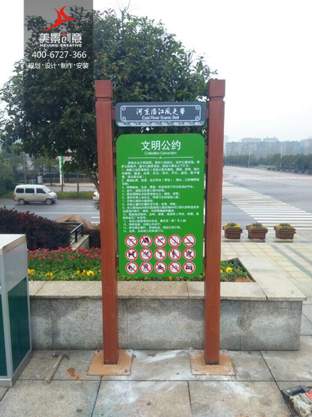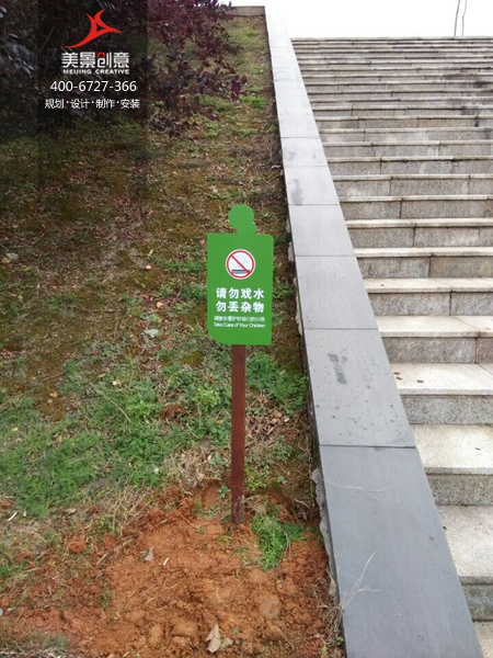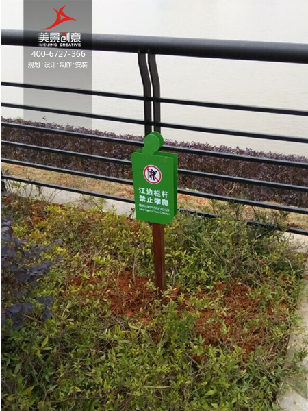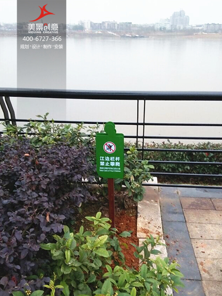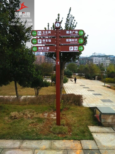 美景创意设计制作的湘潭沿江风光带标识系统注重人文气息,同时在色彩、外形上融合环境因素,绿色代表花草,棕色代表树木。内容包括警示牌、多向指示牌、总导览图、景点介绍牌等等,现已成为湘潭沿江风光带不可缺少的一道风景。