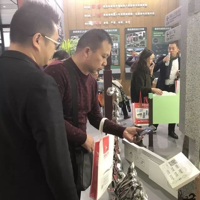 ▲美景创意馆设有扫码区,参展观众通过现场手机扫描二维码体验e路智慧标识
