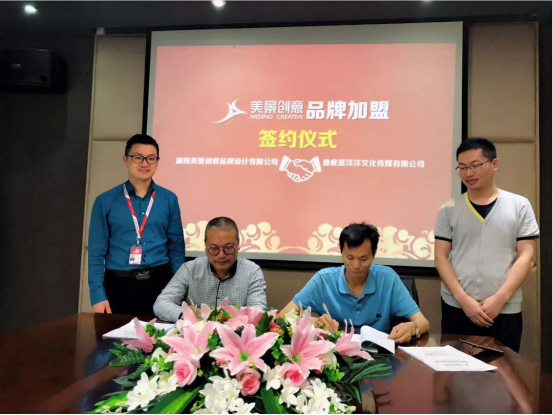 2018年6月6日,美景创意与娄底喜洋洋文化传媒有限公司成功签订品牌加盟合约! 双方代表签字祝贺,并就娄底市场如何开拓、品牌输出计划、技术服务支持、品牌资源共享等进行了深入友好磋商、达成一致。
