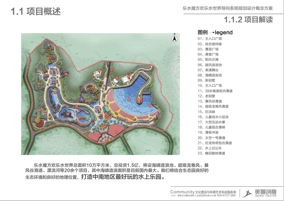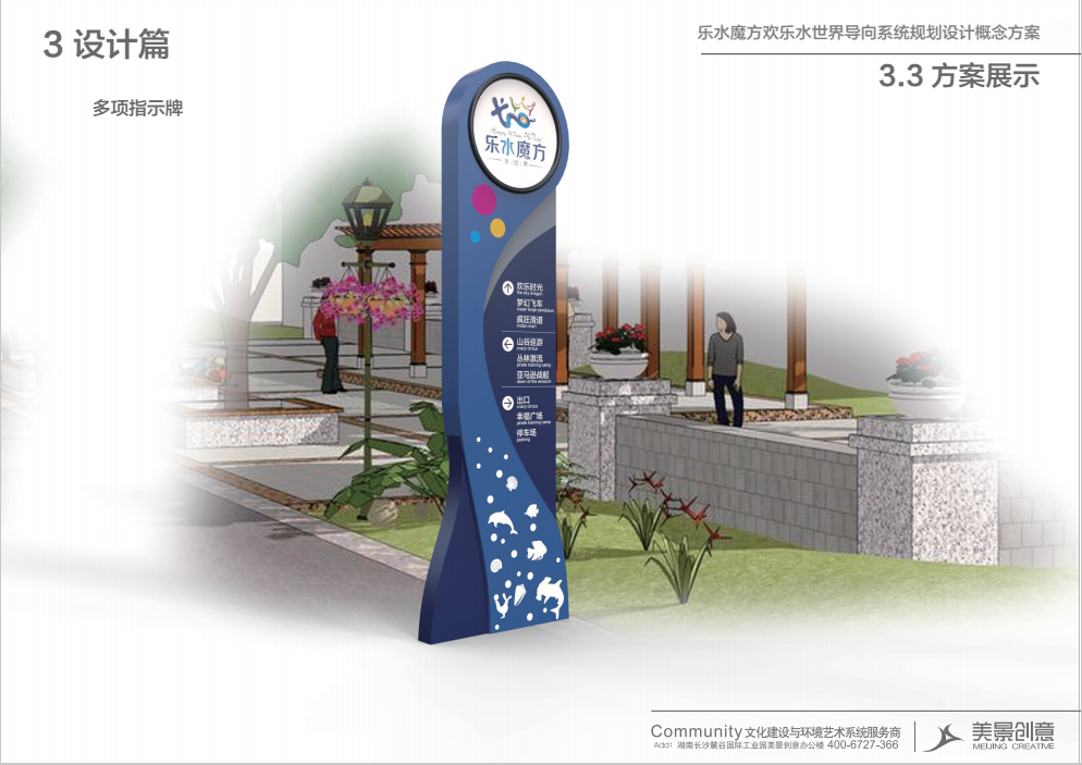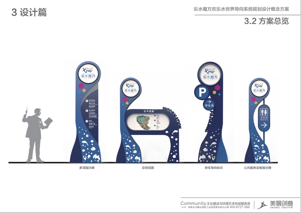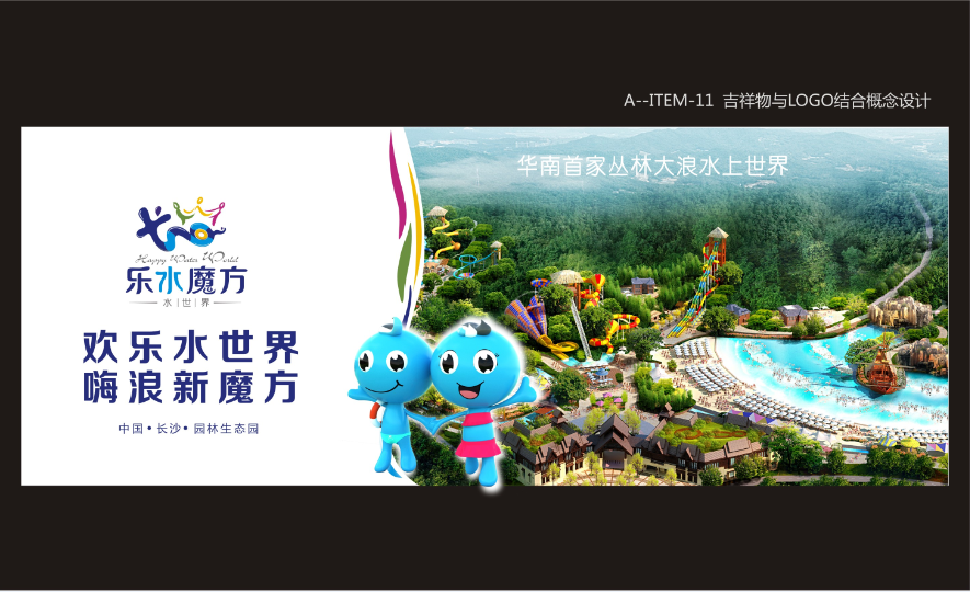 在长沙北二环和星沙连接线上,坐落着华南首家丛林大浪水上乐园——乐水魔方欢乐水世界。其品牌标志、VI系统手册、吉祥物、导向标识系统建设等由美景创意全权设计与建设完成。