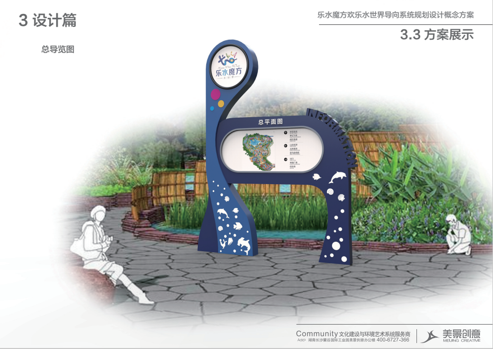 美景创意团队在经过现场调研分析后,在创意上,强调快乐长沙的快乐文化+世界水精灵传统文化+水上乐园的好玩文化,三者结合,打造全新的适合长沙人的乐水魔方水世界。