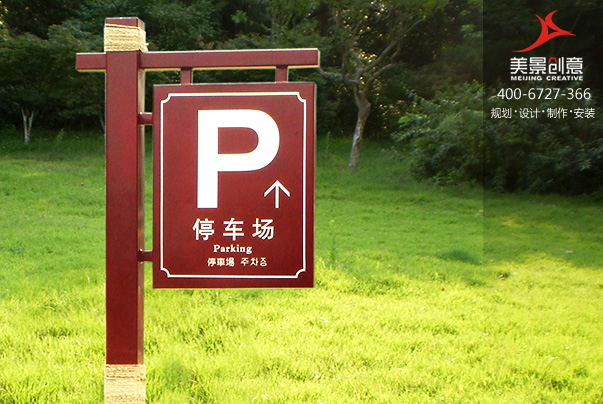 该景区标牌制作以防腐木为主材,木材拥有天然的纹路和肌理效果,非常适合放在旅游景区,不会与景区本身产生违和感,同时给人一种亲近自然、回归自然的舒适感。标牌上的辅助材料麻绳,经桐油浸泡处理,更好地抵御气候的侵蚀。