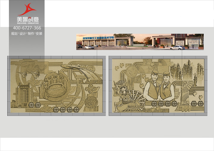 美景创意作为一家集品牌策划、VI系统、导视标识、雕塑艺术、展示展览、文化建设等文化艺术一体服务商,曾为众多学校服务:如中南大学、湖大、女子大学、长郡中学、麓谷国际实验学校等;