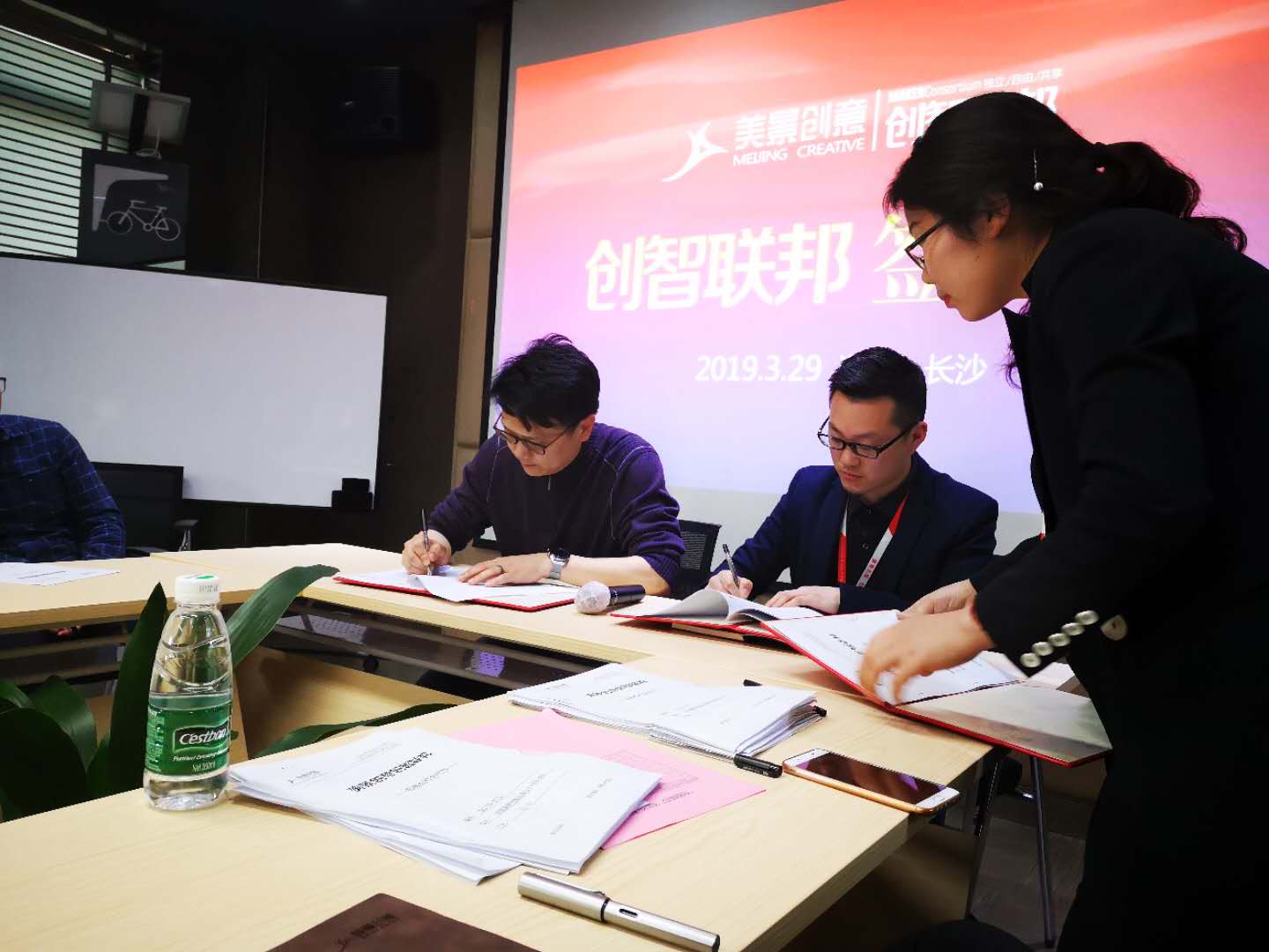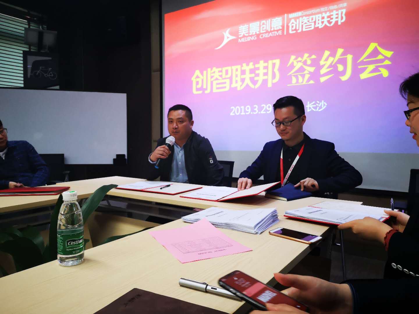 共享美景创意,共创美好未来!3月29日美景创意旗下创智联邦平台举办第一次签约大会。会上,首批签约的四位创客分别与我司副总经理夏令令先生进行签约,同时还有其他业界精英代表与我司管理层共同见证这一盛事。