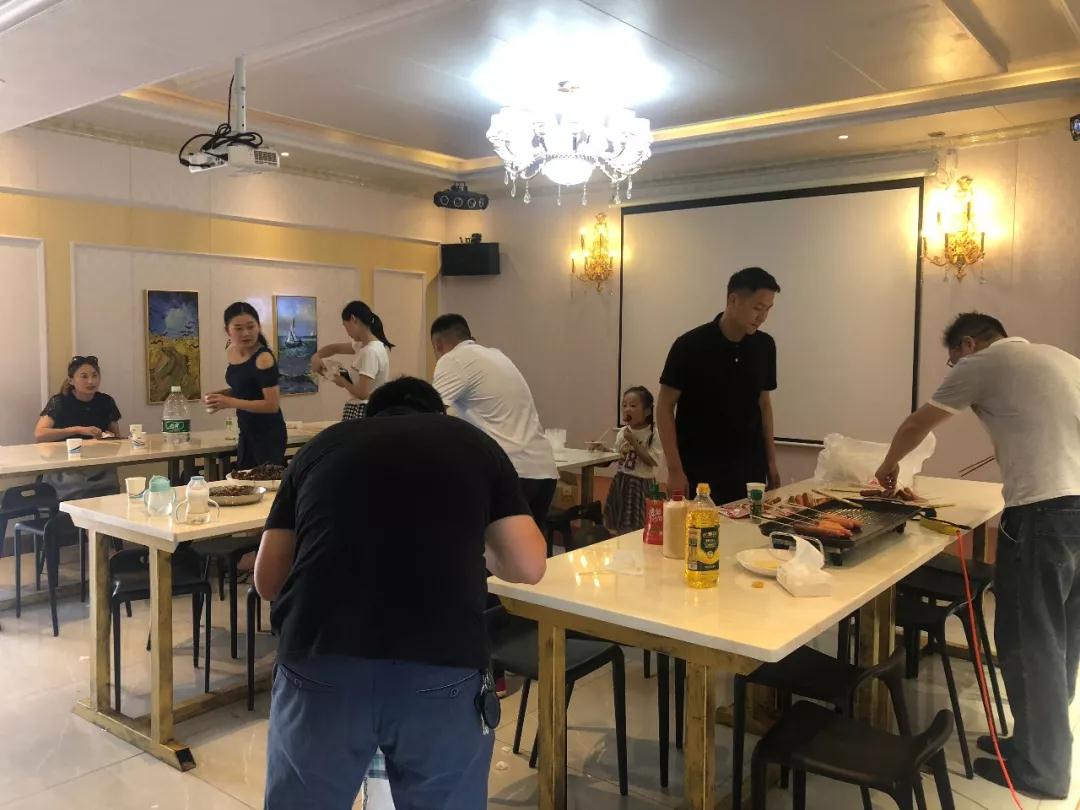 营销中心的伙伴们放飞心情吃喝玩乐,别墅轰趴气氛热烈!夏董事长亲自上阵,为各位营销干将们做BBQ;平时专心业绩的营销伙伴也开始放飞自我,有在厨房里一展身手的,有去ktv单间里大秀歌喉的,也有在桌球场上意气风发的,还有在游戏机上“回忆童年”的,大家都玩得不亦乐乎!