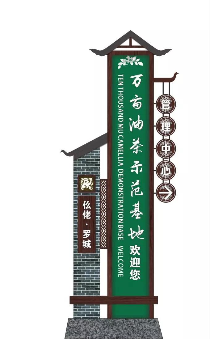 2018年,美景创意受邀对罗城万亩油茶示范基地导向系统进行规划设计。