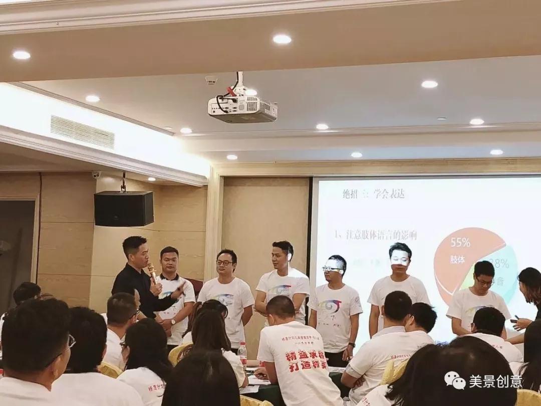据悉,“精鹰计划——中高层管理培训”已举办了23期,由深圳慧天下顾问总经理兼首席绩效顾问郭旭华老师亲自教授。在为期两天的培训活动中,美景创意派出的学习“精鹰”全情投入课程,对管理角色定位、高效管理沟通、高效会议管理、目标与计划管理等内容进行了深入学习;在互动环节,美景人更是激情四射,勇于展现,给在场教练与同行企业团队留下深刻印象。