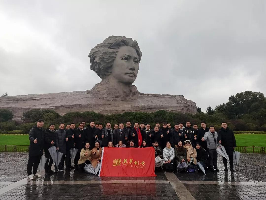 寒风冷雨萧萧木,冬日橘洲伟人瞻。一群有梦想的美景人,迎着风、步履坚,虔诚地走到橘子洲头青年毛泽东雕像前。顶风披雨,举着美景旗,庄严列队,面仰高大巍峨的伟人雕像,后靠滔滔湘江绵延不绝,我们用一腔激情化雨、高声破风,以虔诚志坚之心齐声说出世纪宣言:人间大美,唯创意不可负;文化强国,唯初心不可移。