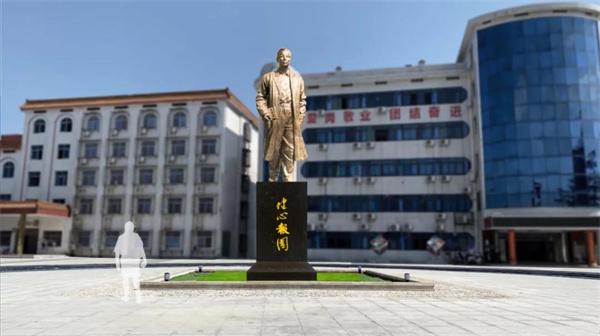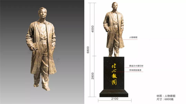 从毛健吾先生生前照片中提取相关元素:眼镜、风衣、西装,并结合先生确定的衡阳二中办学宗旨“健心救国”确定雕塑主题。